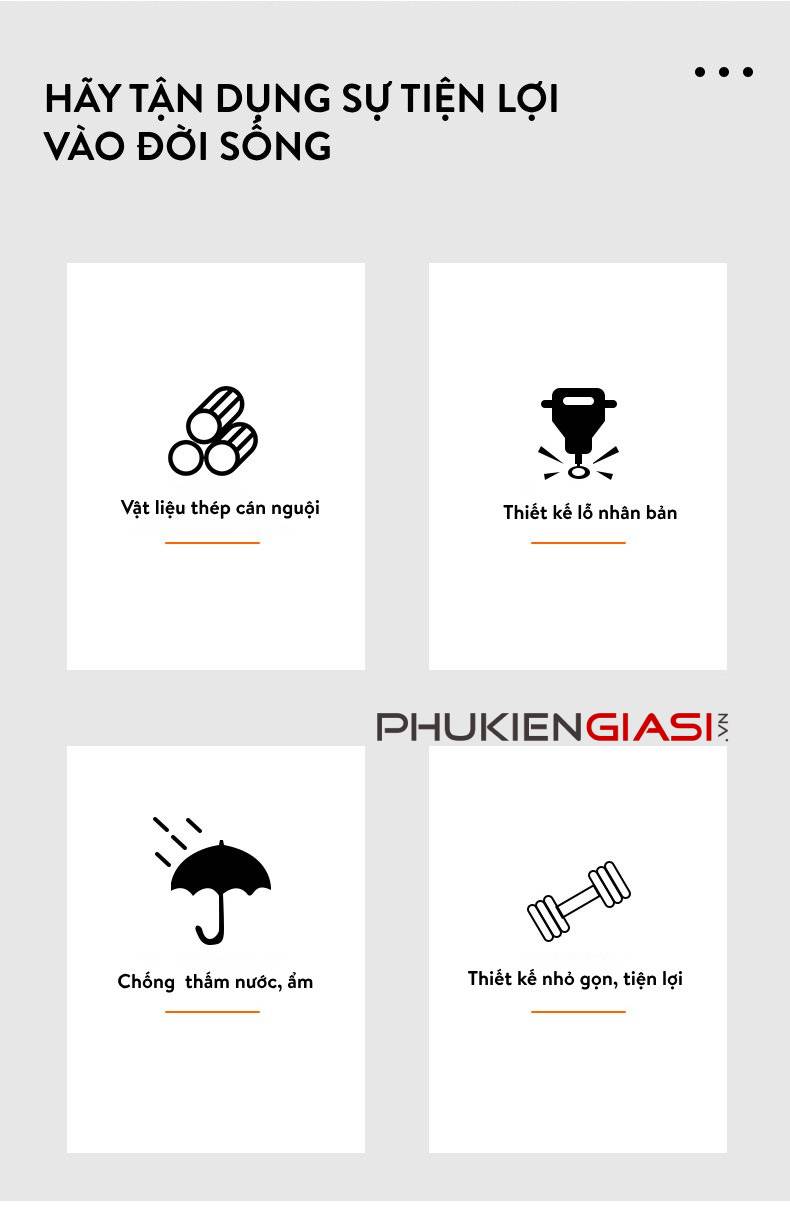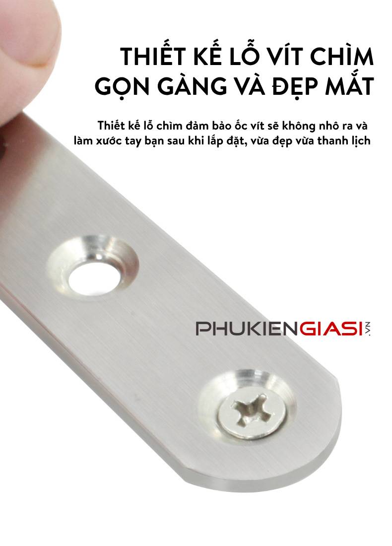 ⚡ Thiết Kế An Toàn Và Tiện Dụng: Các góc bo tròn được đánh bóng kỹ lưỡng, bạn hoàn toàn yên tâm khi lắp đặt mà không sợ trầy xước tay. Thêm vào đó, thiết kế vít chìm và phần đuôi được tối ưu hóa giúp tăng cường khả năng chịu lực, mang lại sự chắc chắn tuyệt đối.