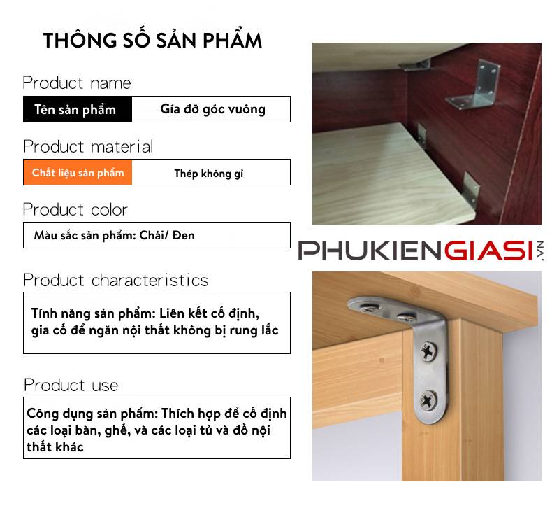 🔹 Tên sản phẩm: Pát ke, giá đỡ góc vuông