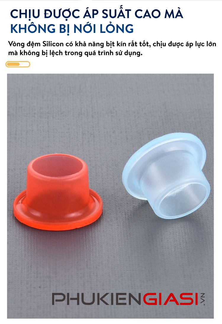 - Vòng đệm được làm bằng nguyên liệu Silicon cao cấp, bịt kín đầu nối và không tạo ra khe hở.