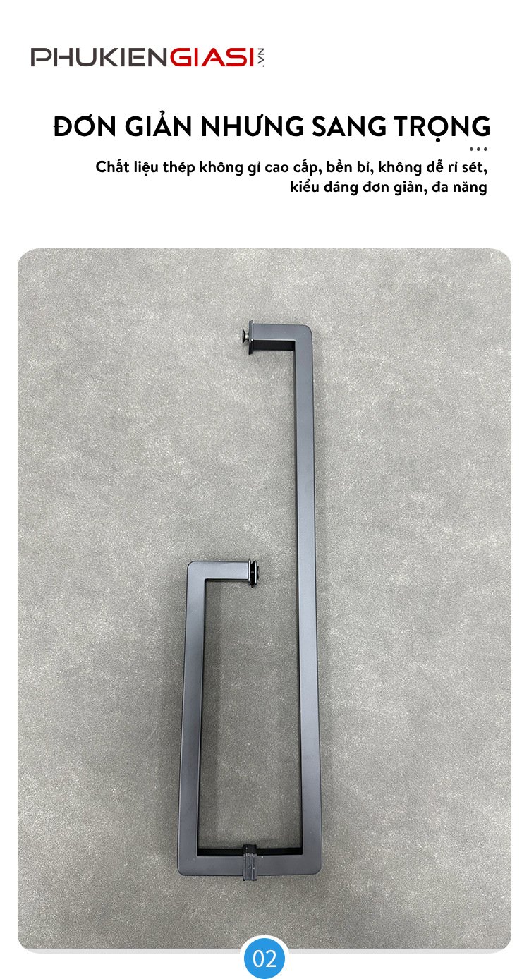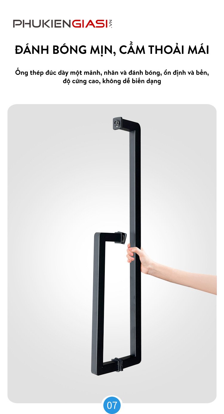 Tay nắm được đánh bóng mịn, mang lại cảm giác cầm nắm thoải mái và không gây hại cho da tay. Sản phẩm còn được trang bị vít chống trượt, giúp cố định chặt chẽ vào cửa kính. Với phong cách đa dạng, tay nắm phòng tắm kính cao cấp phù hợp với nhiều loại không gian và hoàn cảnh khác nhau, từ hiện đại đến cổ điển.