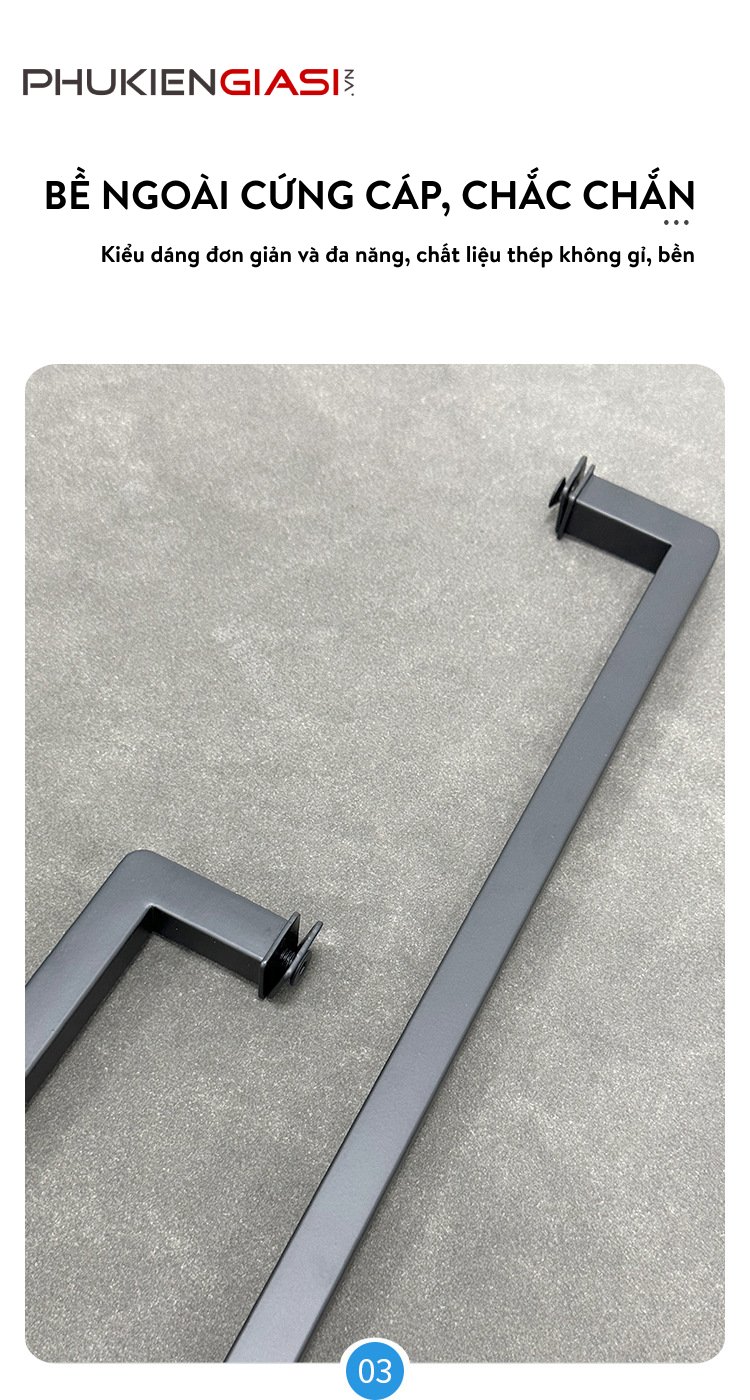 Sản phẩm được chế tạo từ thép không gỉ cao cấp, một vật liệu nổi tiếng với khả năng chống rỉ sét và độ bền bỉ vượt trội. Tay nắm không chỉ giữ nguyên vẻ sáng bóng theo thời gian mà còn đảm bảo độ cứng cáp, chắc chắn. Bề mặt mạ điện chất lượng cao giúp sản phẩm không dễ phai màu, giữ nguyên vẻ đẹp ban đầu dù trải qua thời gian sử dụng lâu dài.