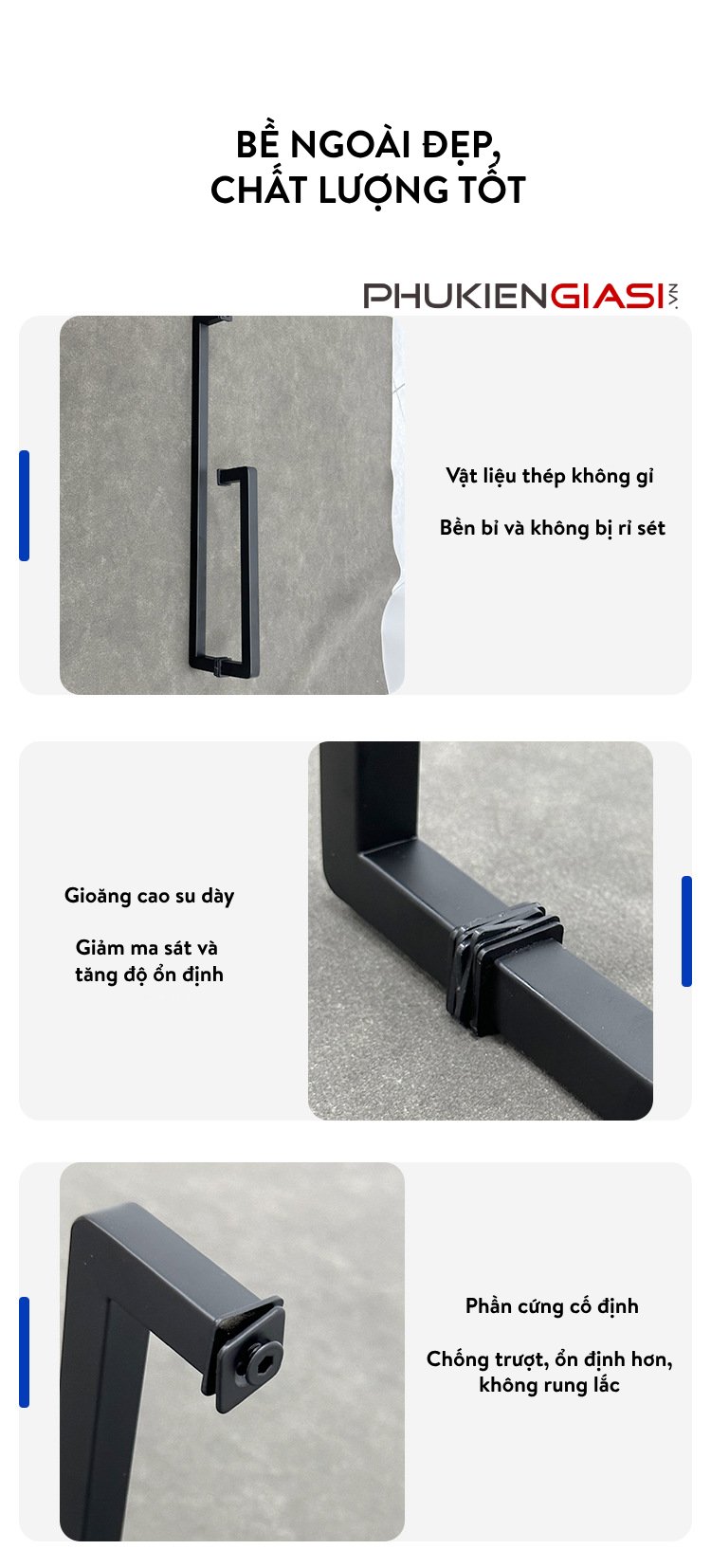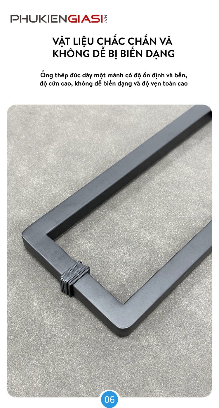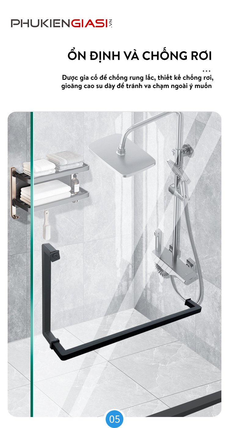 Điểm đặc biệt của tay nắm phòng tắm kính cao cấp chính là thiết kế chống rung lắc và chống rơi, nhờ vào gioăng cao su dày giúp tránh va chạm ngoài ý muốn. Vật liệu được gia cố chắc chắn, không dễ bị biến dạng, đảm bảo an toàn cho người sử dụng. Ngoài ra, ống thép đúc dày một mảnh mang lại độ ổn định cao, giúp sản phẩm có thể chịu lực tốt mà không bị hư hại.