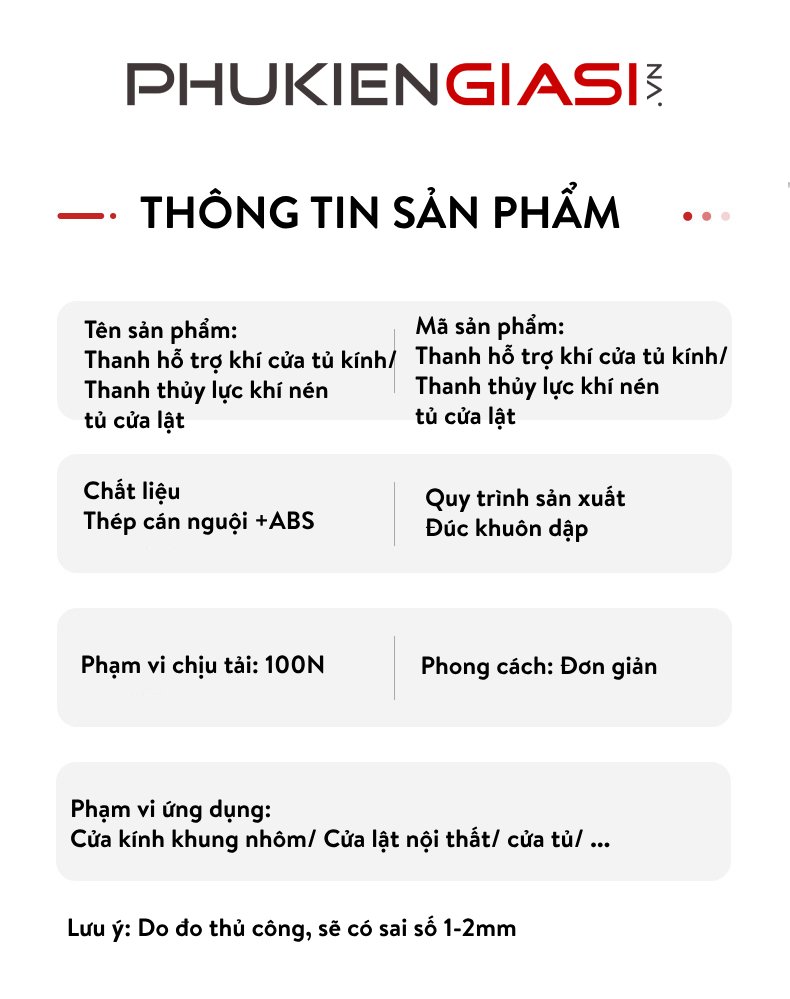 - Thiết kế tinh tế: Thiết kế gọn nhẹ và tinh tế giúp thanh hỗ trợ khí dễ dàng lắp đặt và phù hợp với nhiều loại tủ kính khác nhau.