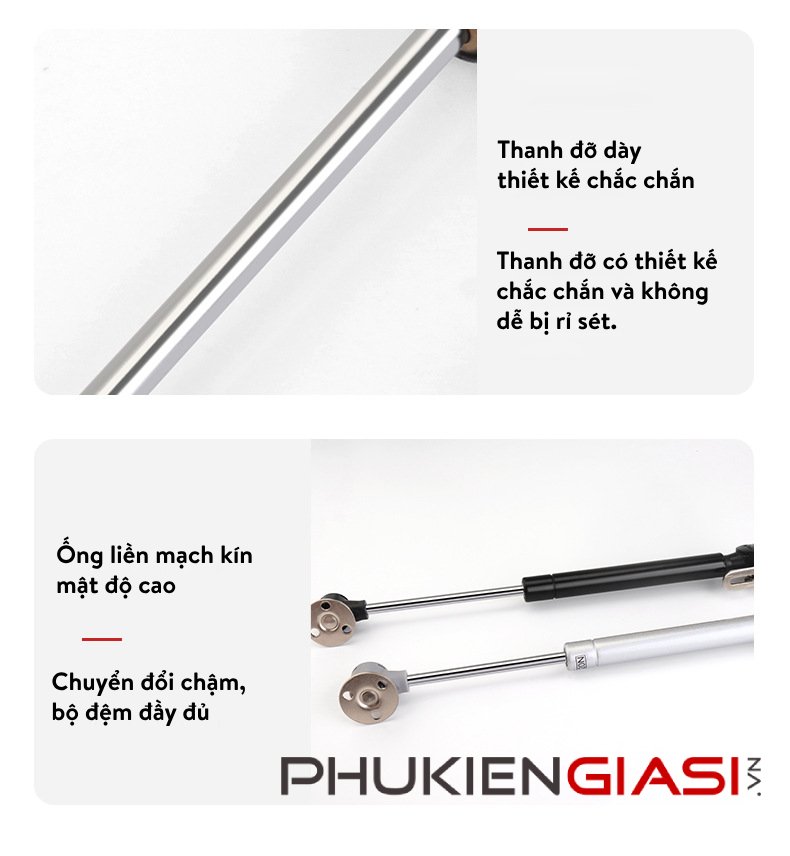 - Khả năng chịu lực tốt: Được làm từ vật liệu chất lượng cao, thanh hỗ trợ khí có khả năng chịu lực tốt, đảm bảo độ bền và an toàn trong quá trình sử dụng.