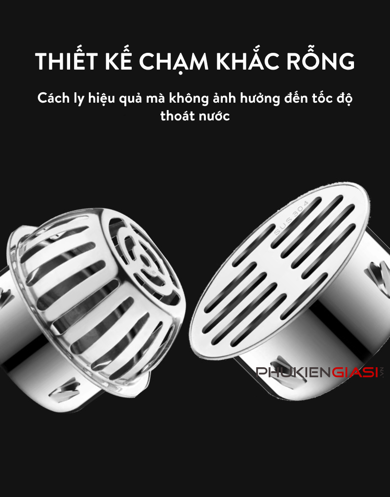 - Nắp giúp thoát nước nhanh chóng và hiệu quả, ngăn ngừa sự tắc nghẽn và xâm nhập của sâu bọ