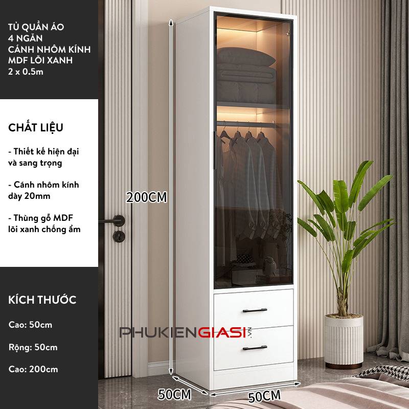 Hiểu rõ nhu cầu đa dạng về không gian, tủ quần áo cánh nhôm kính của Phụ Kiện Giá Sỉ được thiết kế với hai phiên bản kích thước.