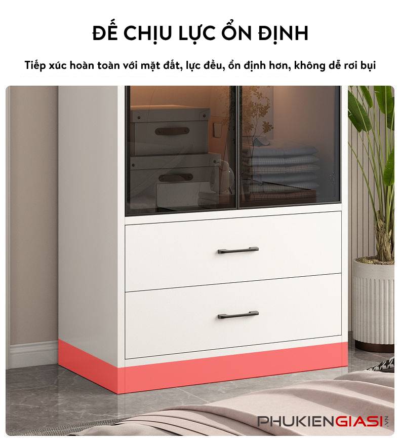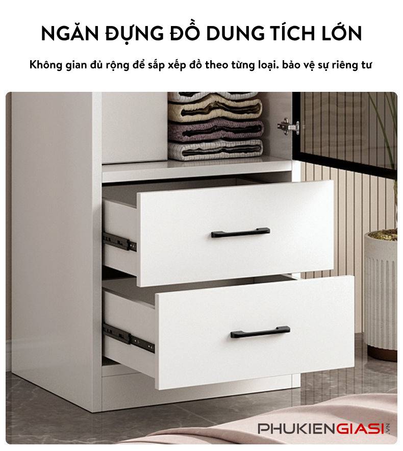 Thiết kế 4 ngăn thông minh: Bao gồm khu vực treo đồ phía trên và 2 ngăn kéo lớn phía dưới.
