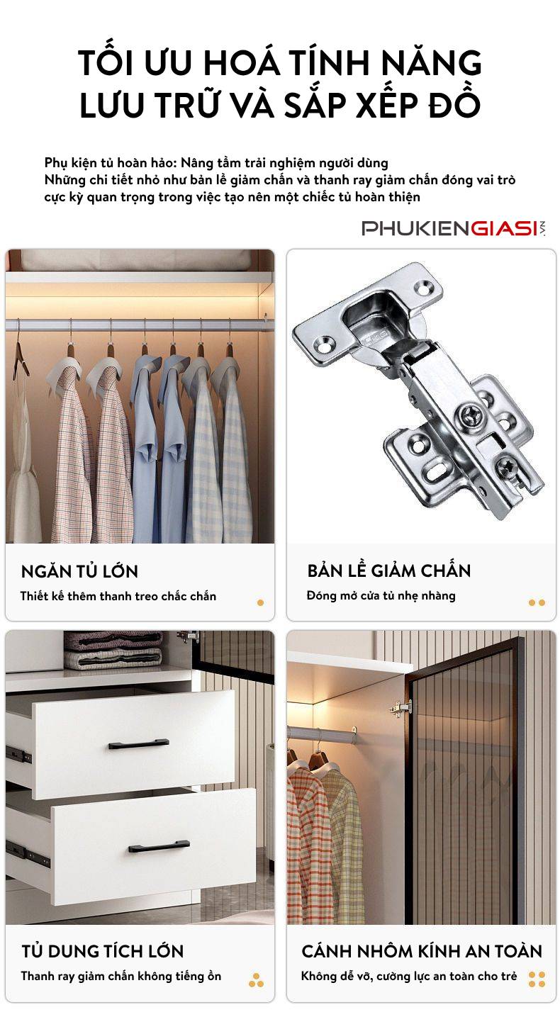 - Đảm bảo độ bền vững, không rỉ sét, giúp cánh tủ luôn êm ái khi sử dụng.