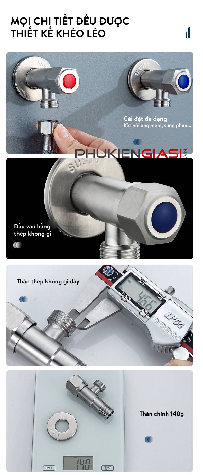 - Không bị mài mòn, oxi hóa: Chất liệu thép không gỉ SUS304 cao cấp giúp van có khả năng chống lại sự ăn mòn và oxi hóa, đảm bảo độ bền và tuổi thọ dài lâu.