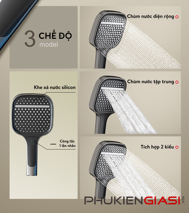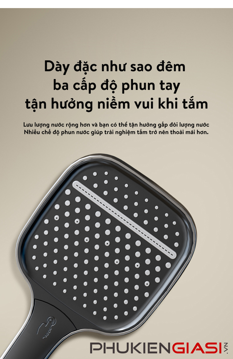 Với nhiều chức năng đa dạng, từ phun mưa, phun sương đến phun massage, vòi sen này sẽ là điểm nhấn không thể thiếu cho không gian tắm của bạn. Được thiết kế thông minh, dễ lắp đặt và sử dụng, sản phẩm này hứa hẹn mang lại trải nghiệm tắm đẳng cấp và tiện nghi cho gia đình bạn.