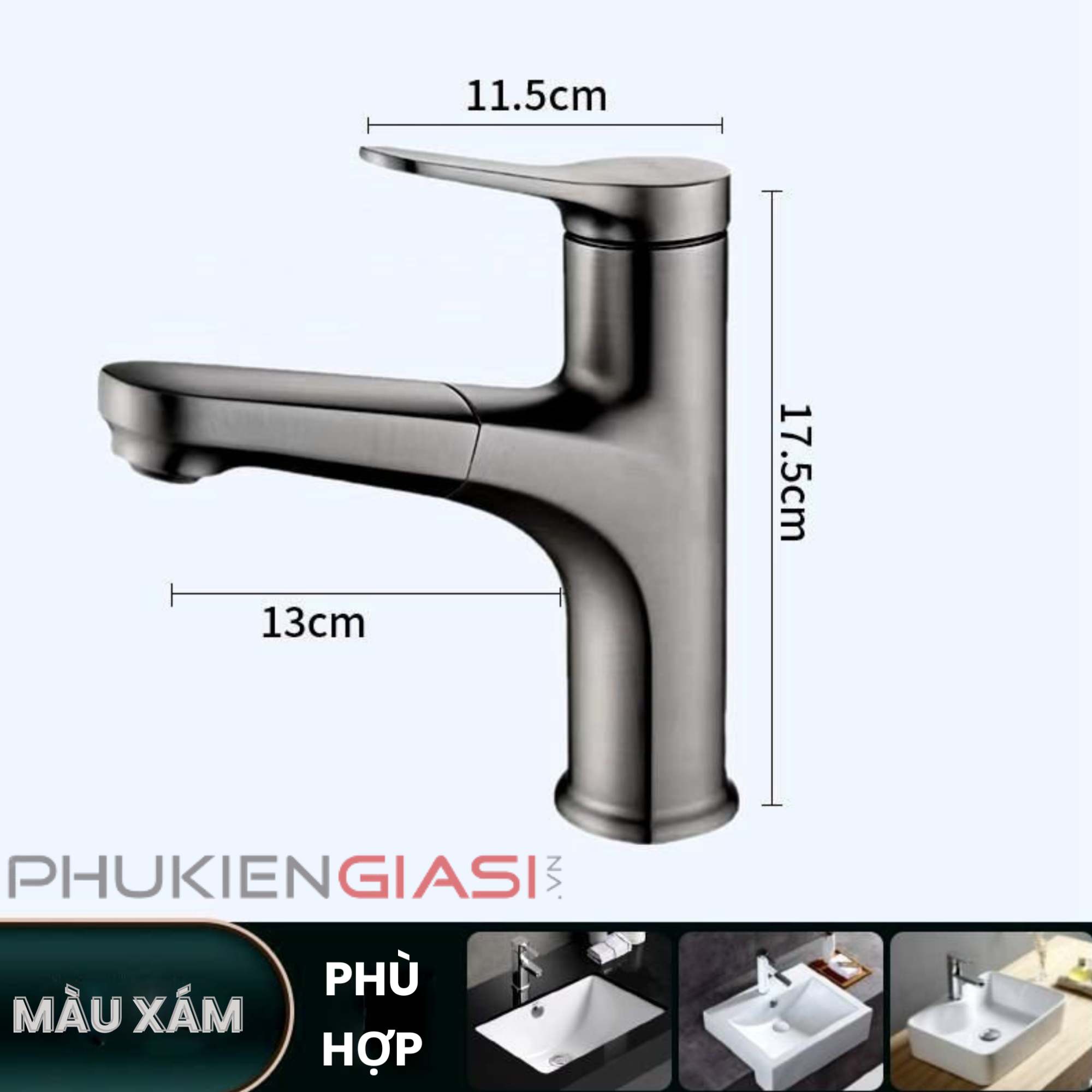 - Chiều dài thân vòi: 13 cm