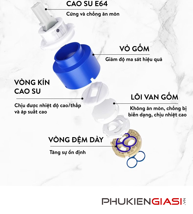 - Lõi van gốm chắc chắn, không bị nhỏ giọt trong quá trình sử dụng