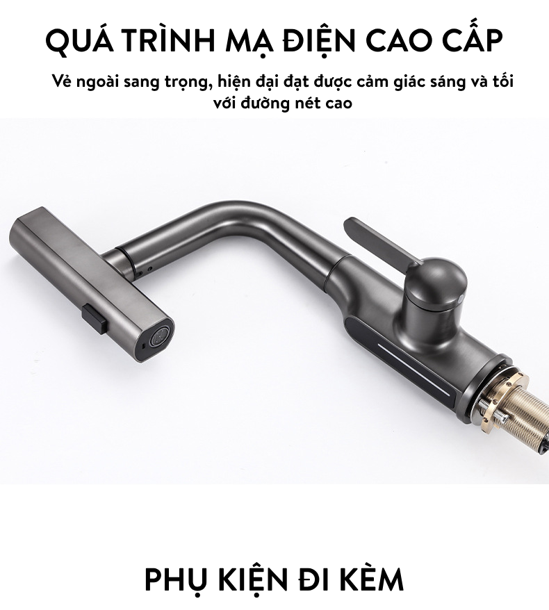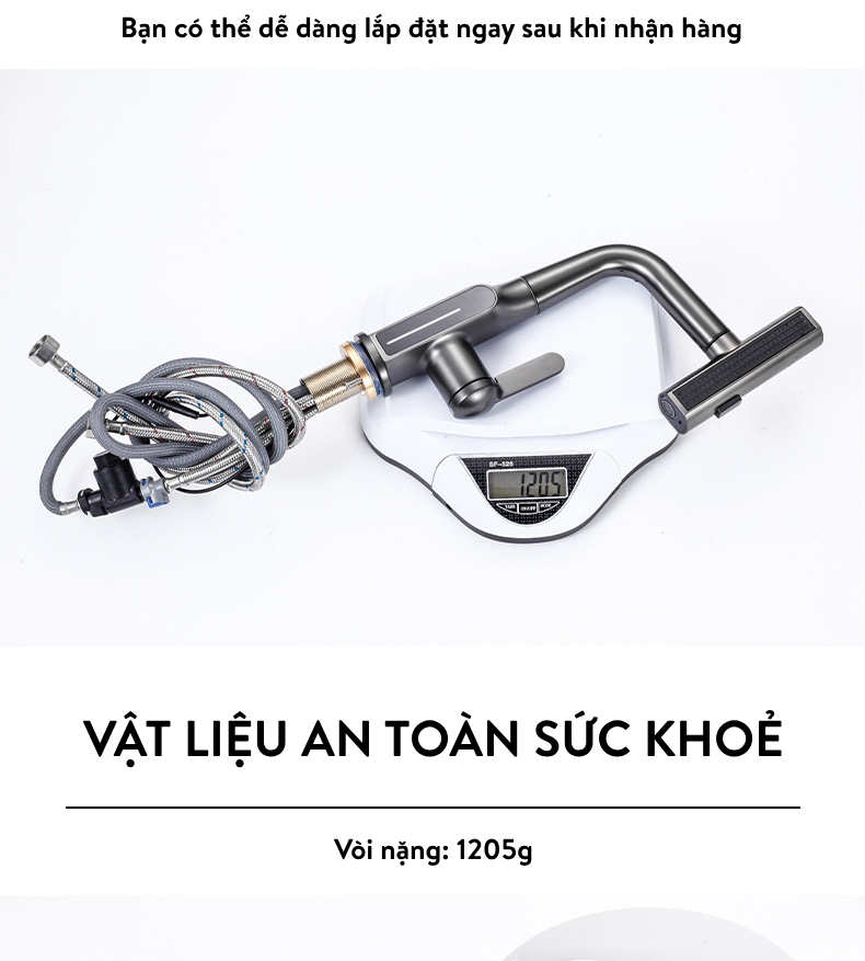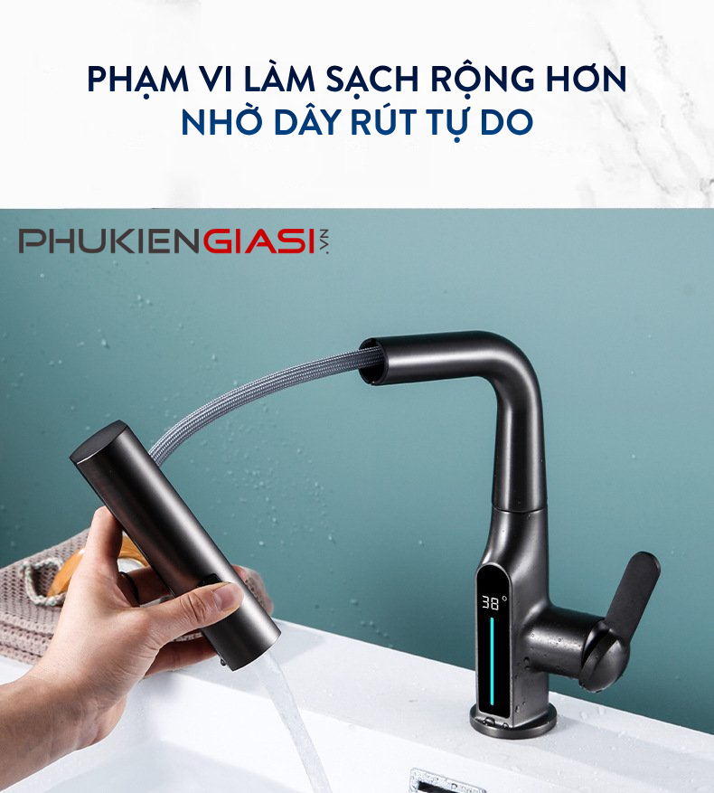 - Vòi có dây rút, kéo ra và rút vào thoải mái
