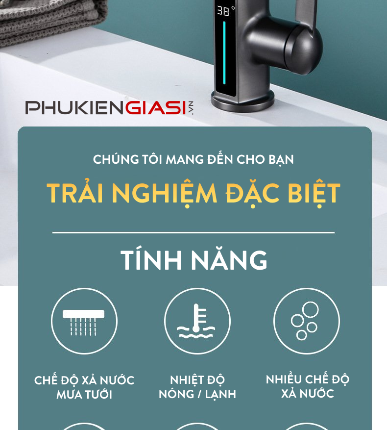 - Điều chỉnh nhiệt độ nóng lạnh theo sở thích, hiện thị nhiệt độ trên màn hình LED