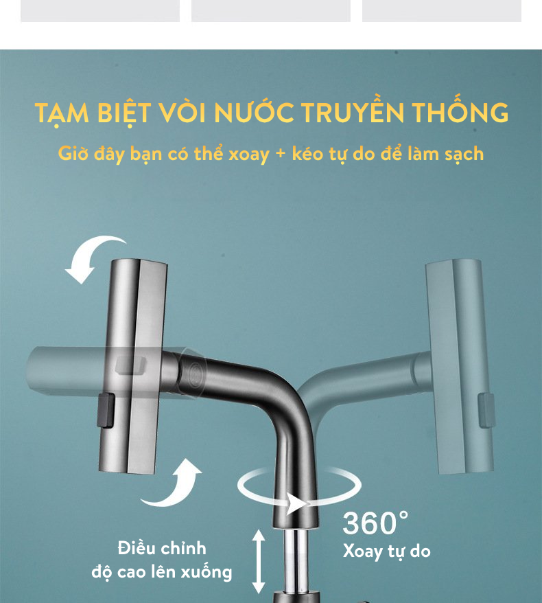 - Vòi có thể xoay tự do 360 độ, dễ dàng làm sạch bồn xung quanh