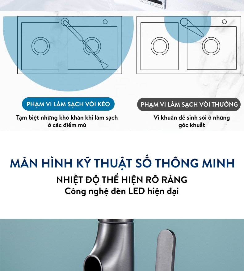 ƯU ĐIỂM CỦA VÒI RỬA CHÉN BÁT CÓ DÂY RÚT + MÀN HÌNH LED