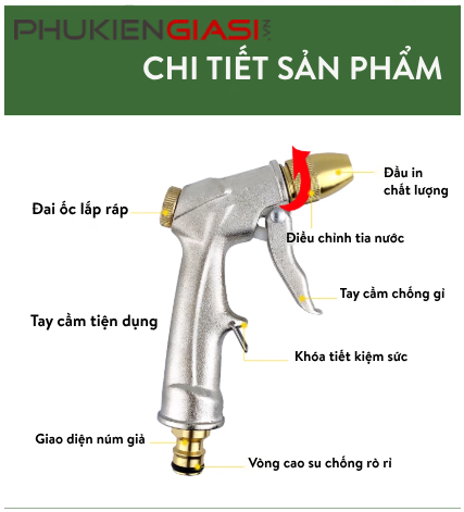 Vòi xịt này được chế tạo từ hợp kim nhôm cao cấp, đảm bảo tính cứng cáp và bền bỉ. Hợp kim nhôm không chỉ nhẹ mà còn chống gỉ sét và chịu được các tác động từ môi trường bên ngoài. Điều này giúp sản phẩm duy trì được hình dáng và tính năng tốt sau thời gian dài sử dụng.